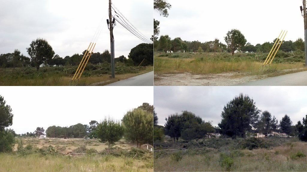 Querem transformar isto num deserto árido? Pinheiros verdes, vários deles mansos, saudáveis, que davam sombra, humidade, protegiam do vento, agora passamos, e é só pó, terra seca a apanhar sol o dia todo, mas o objectivo é causar incêndios? Não é zona para aplicação da lei dos incêndios!